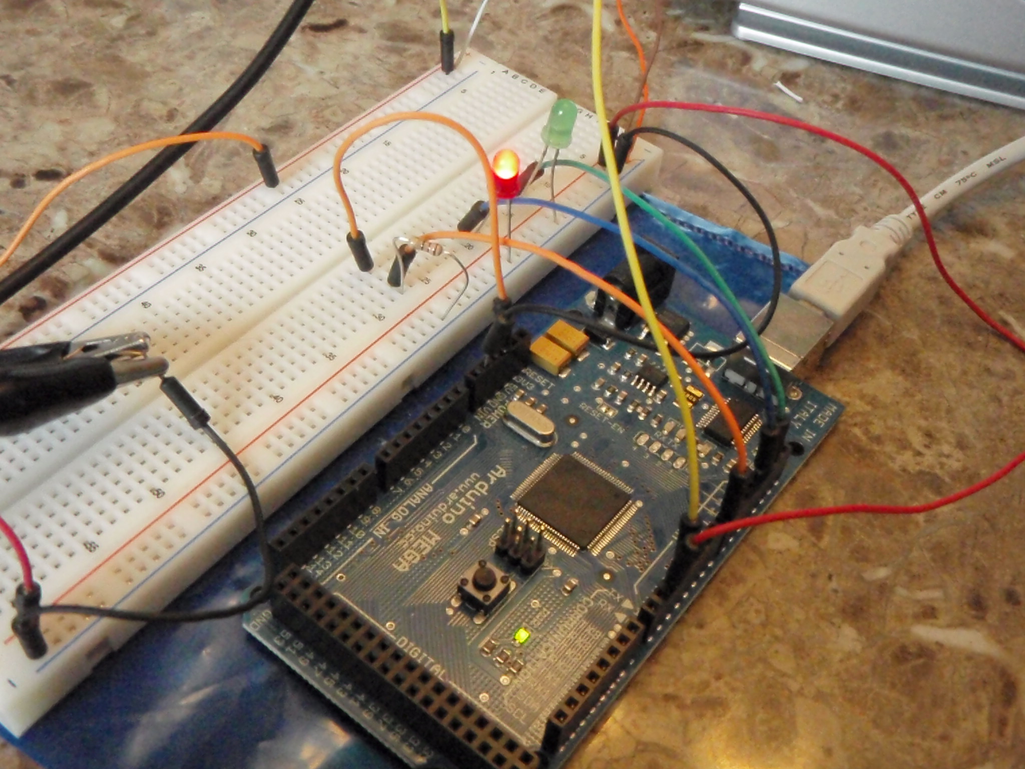 The RED LED is connected to Pin 12, this sets the Arudino program into debug mode. When in debug mode it sends extra data out the serial line.