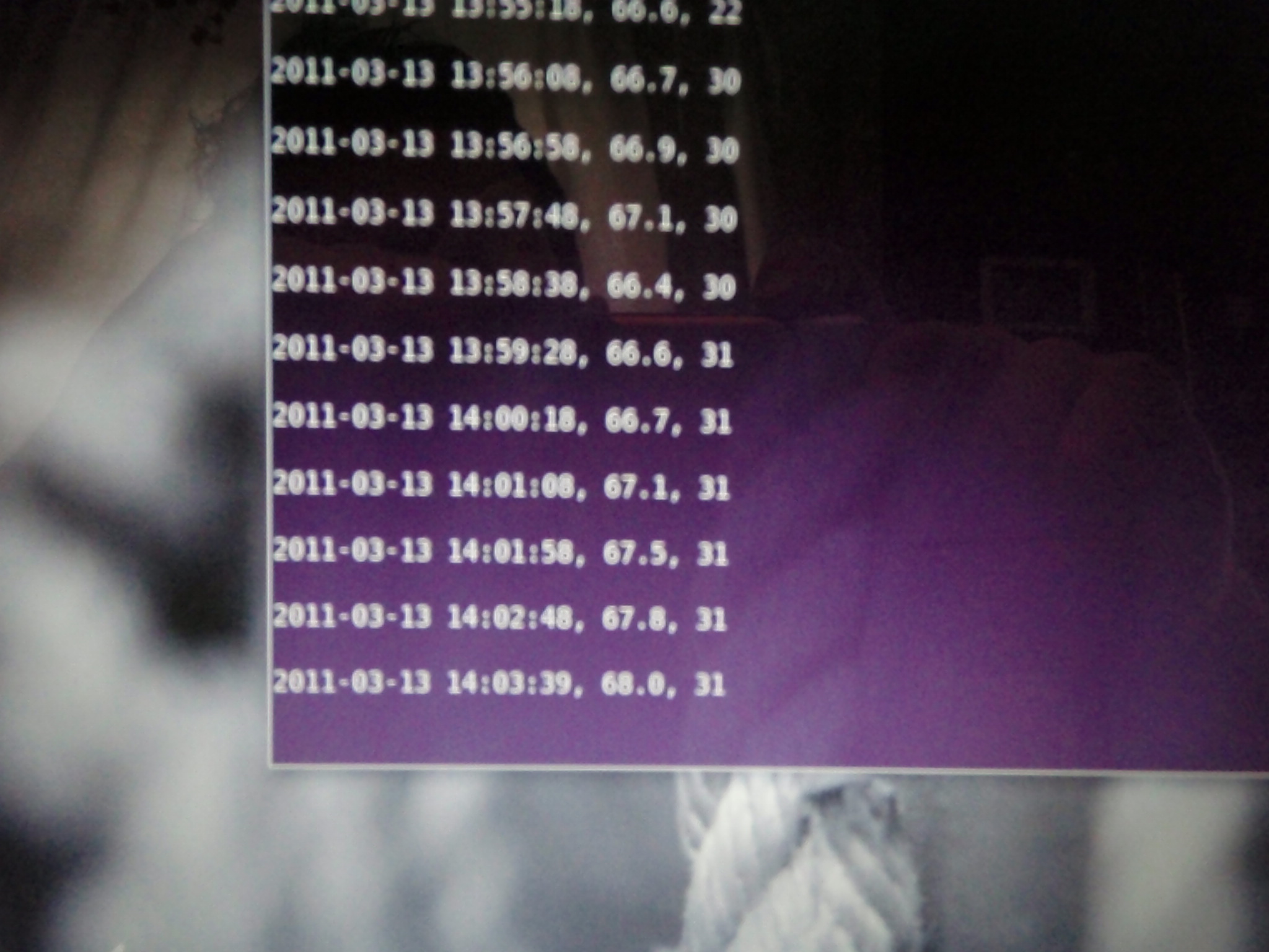 Once the data is received by the Arduino it's sent over the USB cable to the computer. This is where I have a python script listening to /dev/ttyUSB0 for incoming data. The data is then dumped to a .CSV file for later use. From here I will also make this data available remotely so I can check it from my Android phone.